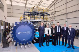 La presidenta de Navarra, María Chivite, ha visitado este miércoles las instalaciones de la empresa Nordex Electrolyzers, ubicada en Lumbier, para conocer de primera mano