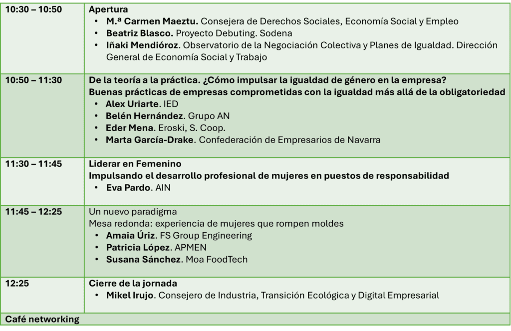 Jornada enmarcada en el proyecto Debuting y el Plan de Empleo de Navarra 2025-2028, para compartir buenas prácticas y retos de empresas que están avanzando en esta materia y conocer experiencias inspiradoras igualdad de género como factor de competitividad empresarial.